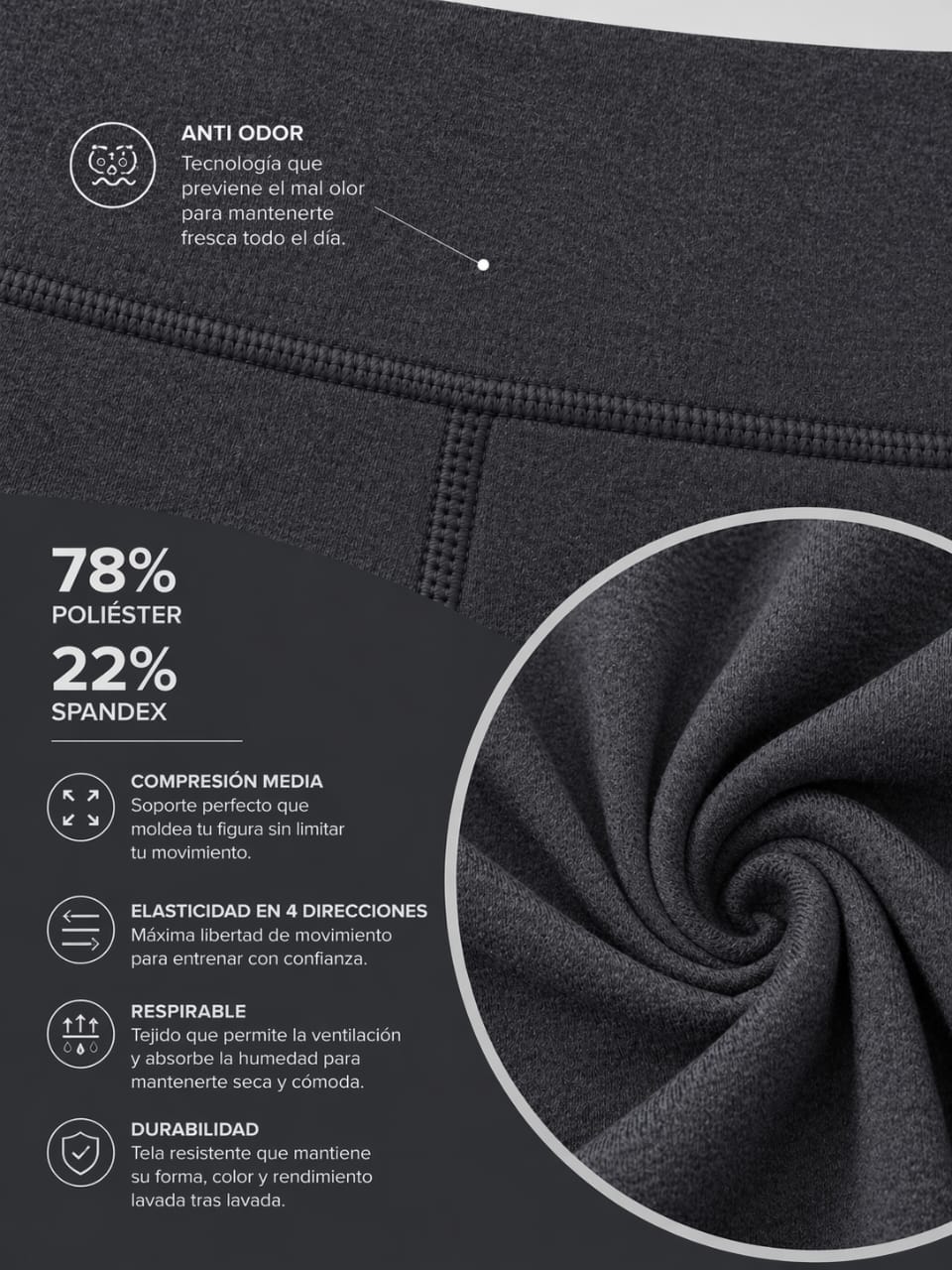 | Estilo | Anti Olor, Full Length (Completamente Larga), Tiro Alto (High-Rise) |
