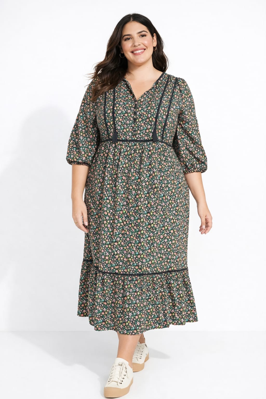 | Estilo | Botones y Liston en el Escote, Cuello en V, Maxi Dress |