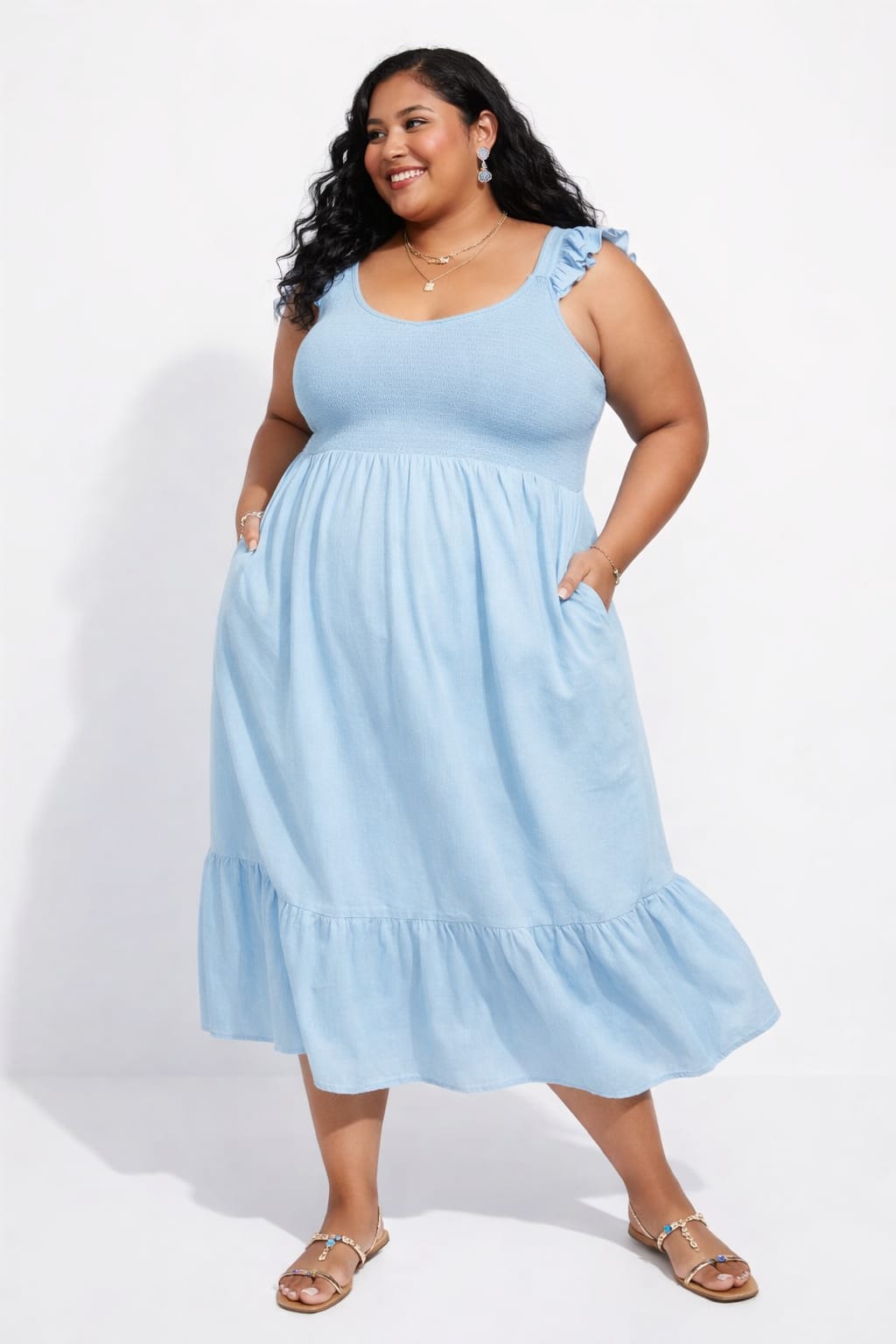 | Estilo | Con Bolsillos, Corpiño Fruncido (Smocked Bodice), Midi, Tirantes con Volantes (Revuelo) |